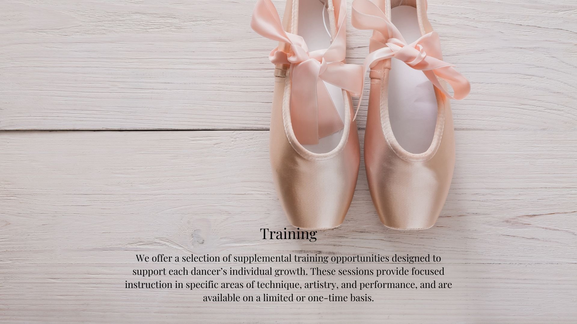 Personalized one-on-one training designed to refine technique, strengthen alignment, and deepen artistic understanding. Private instruction allows focused attention on individual goals while reinforcing the discipline and standards of classical ballet.